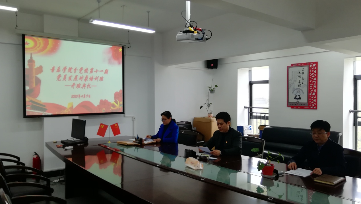 学院党委副书记张波同志首先传达了贵大党校[2020]2号文件《中共贵州大学委员会党校关于举办贵州大学第十一期党员发展对象培训班的通知》,传达了中共贵州大学委员会党校对培训内容与目的、培训对象与时间、培训方式与安排、学员管理与考核的相关要求与工作部署。党委委员、组织员高琛老师为培训班全体学员介绍了此次培训的具体安排。本期培训学习因在网络平台上完成,明确了班干的任务与学员应做到的基本要求和纪律。高琛同志指出,党员发展对象更多是自我管理、自我监督,自我提升,同时在学习、生活和工作中发挥表率作用。
