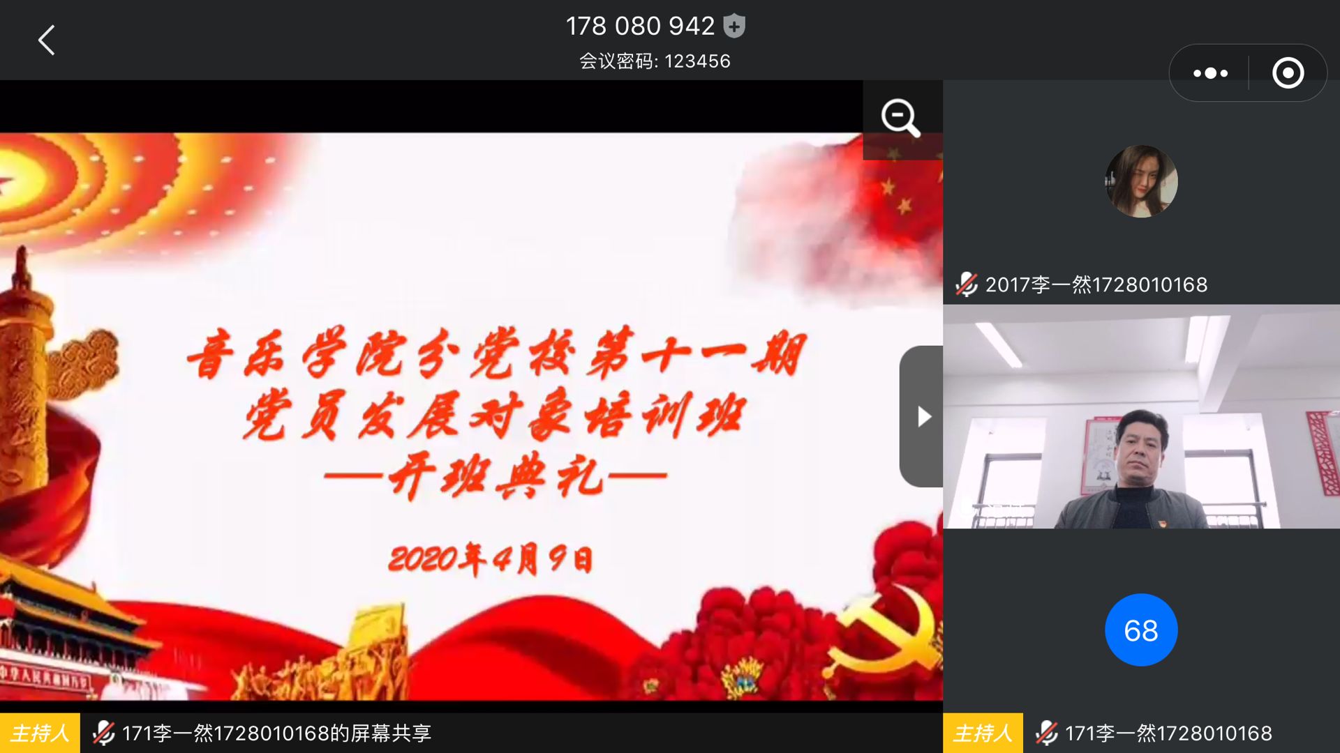 根据贵大党校[2020]2号文件精神和要求,鉴于当前疫情防控形势,2020年4月9日中午13:30分,欧亿6蓝狮平台分党校第十一期党员发展对象培训班开班典礼在学院802会议室以“腾讯会议”形式举行。欧亿6蓝狮平台党委书记范斌同志、党委副书记张波同志及第十一期党员发展对象培训班共五十三名学员参加开班典礼。开班典礼由欧亿6蓝狮平台党委委员、组织员高琛同志主持。